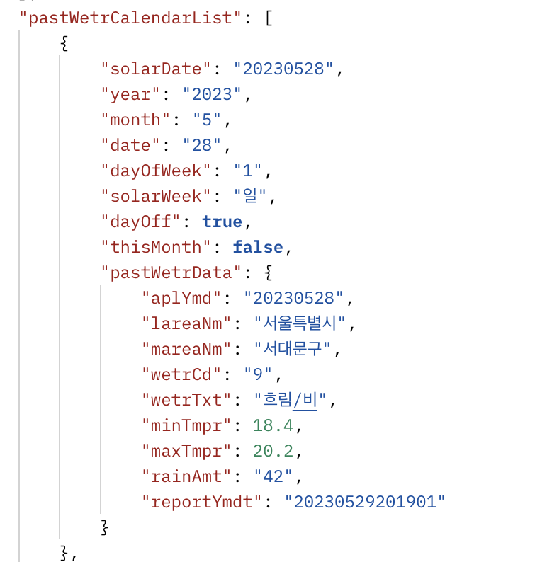 그 코드로 어떻게 과거날씨를 가져오는지 한번 알아보겠습니다.