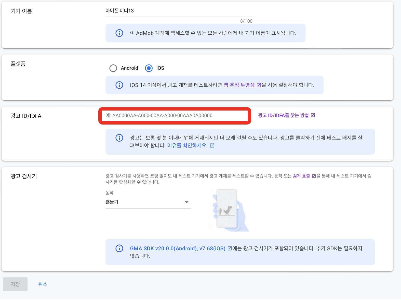 ID를 가져왔다면 이제 내 디바이스에서 광고를 클릭하는 실수는 해결했습니다.