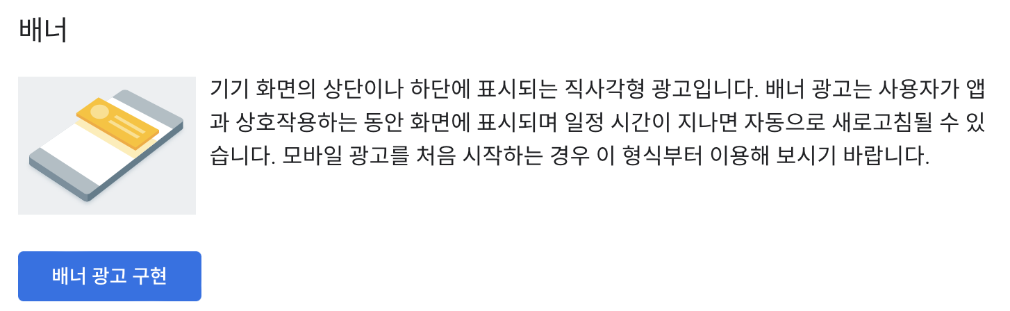 이제 배너 광고 구현으로 넘어가 봅시다.