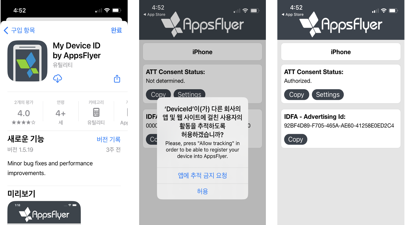 저는 누군가 만든 ID/IDFA를 가져오는 앱을 사용했습니다.