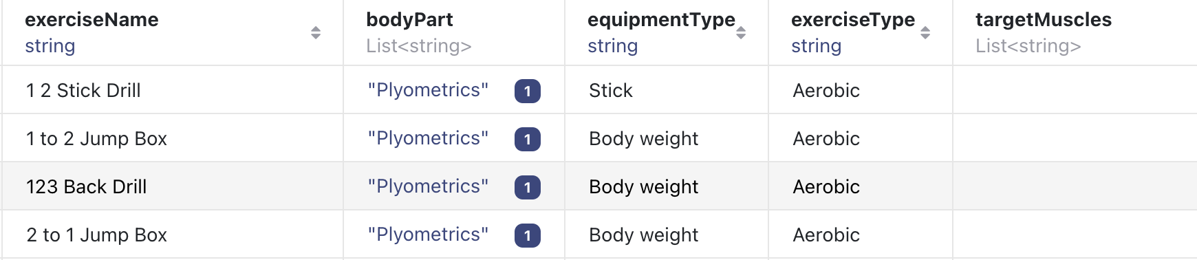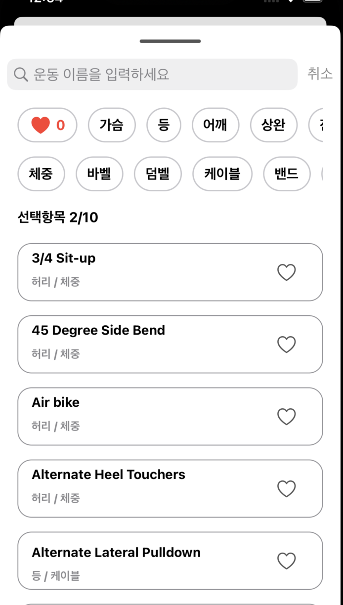 운동 데이터베이스(DB)를 생성하여 앱에 삽입하여 사용하려고 시도해 보았습니다.