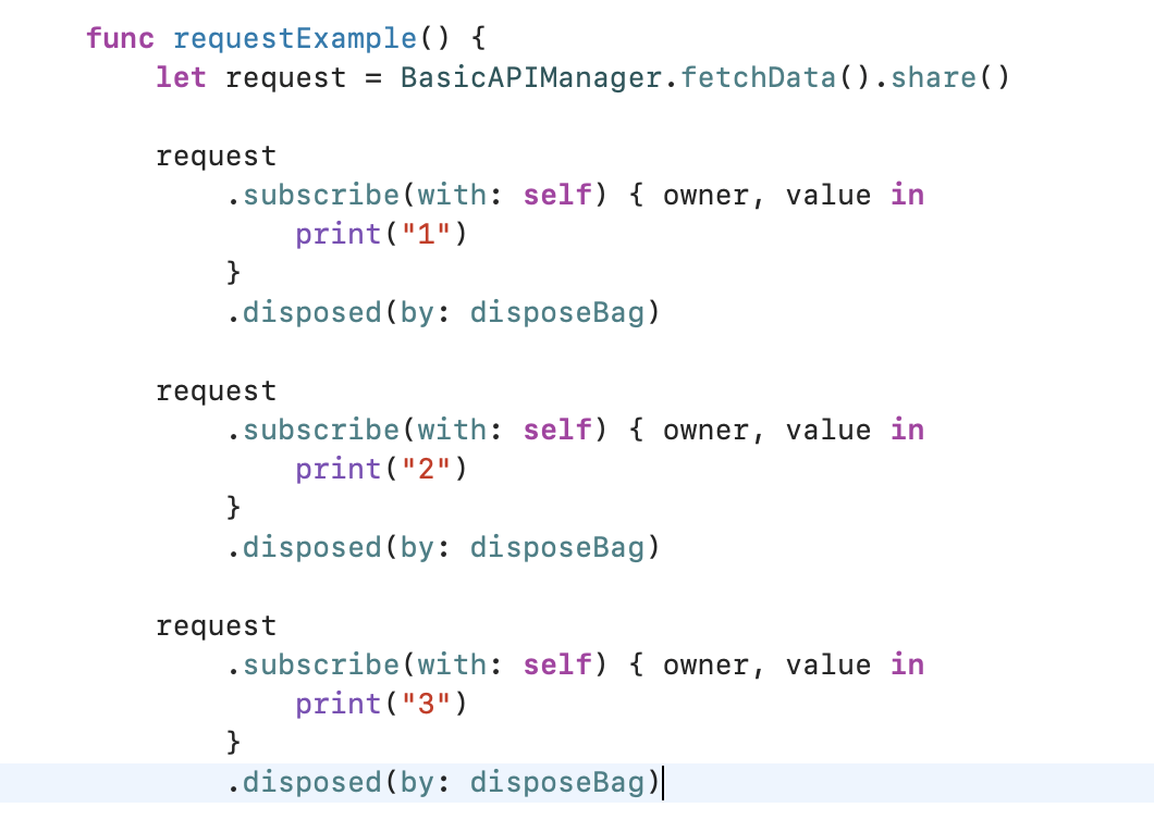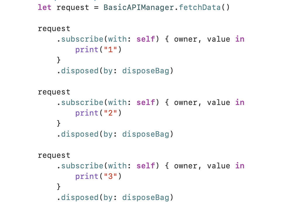 위 코드를 실행하면 "URLSession Succeed"가 한 번만 출력되고, 동일한 스트림에서 이벤트 전달이 3번 발생한 것을 확인할 수 있습니다.