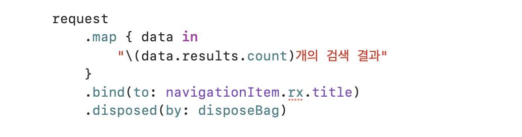 위 코드처럼 subscribe 대신 bind와 RxCocoa에서 제공하는 기능인 rx 키워드를 사용하여 UI 요소와 바인딩할 수 있습니다.