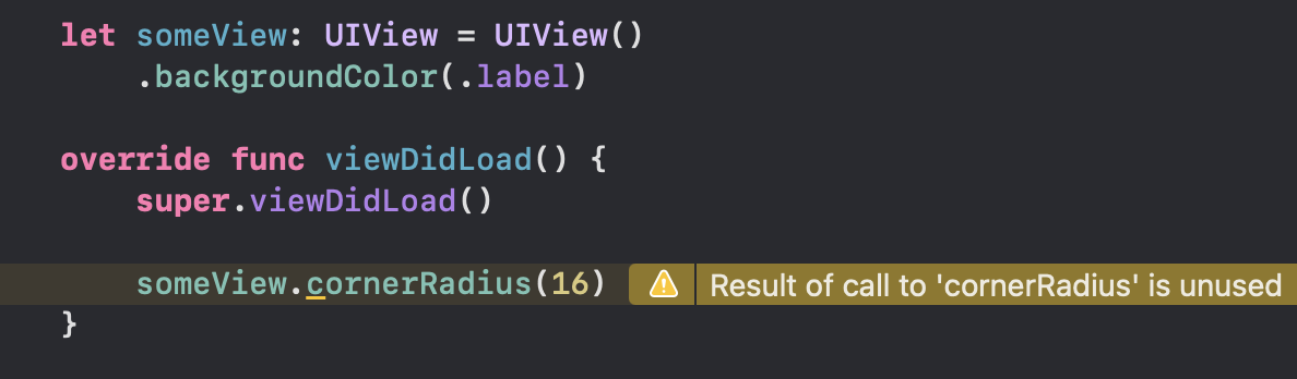 저는 SwiftUI와 같이 메서드 체이닝을 활용하여 깔끔하게 UI 객체를 만드는 코드를 작성하고 싶었습니다.