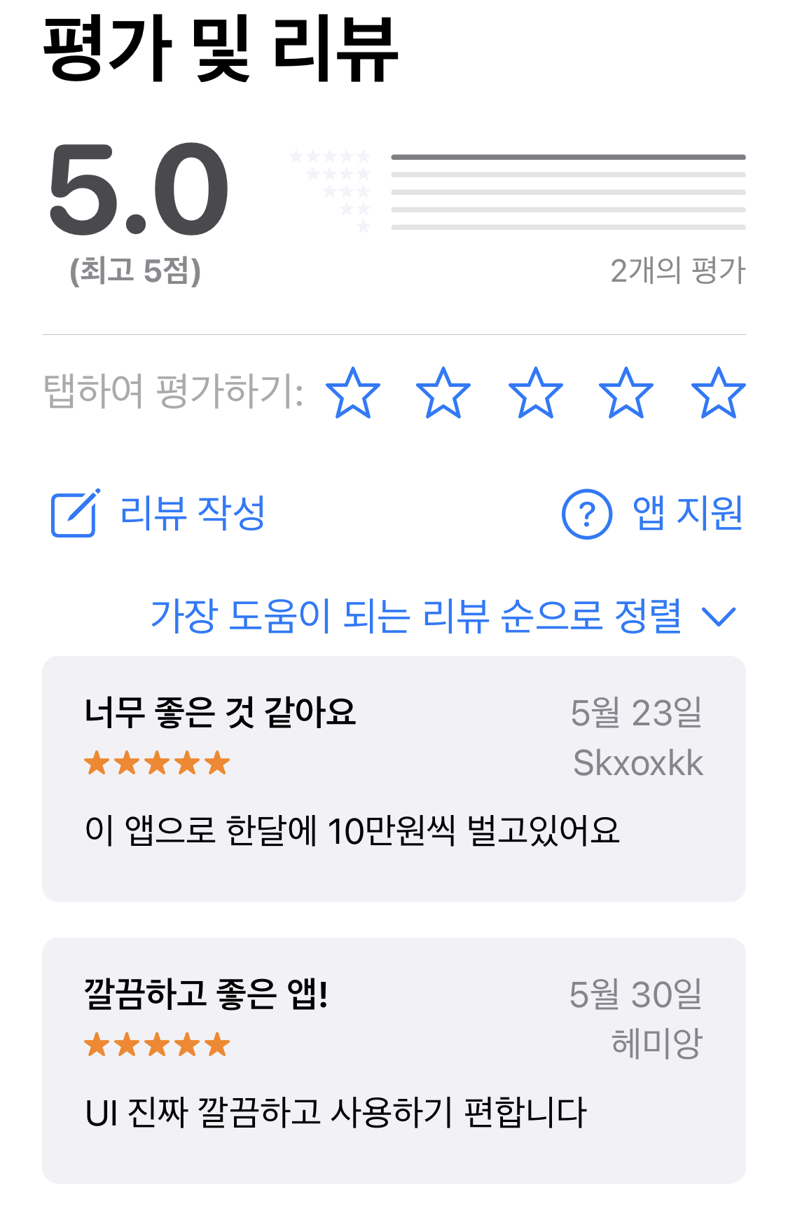 이때 리뷰 팝업을 띄워 유도하면 리뷰 수를 늘리고 신규 유저의 유입을 증가시킬 수 있습니다.