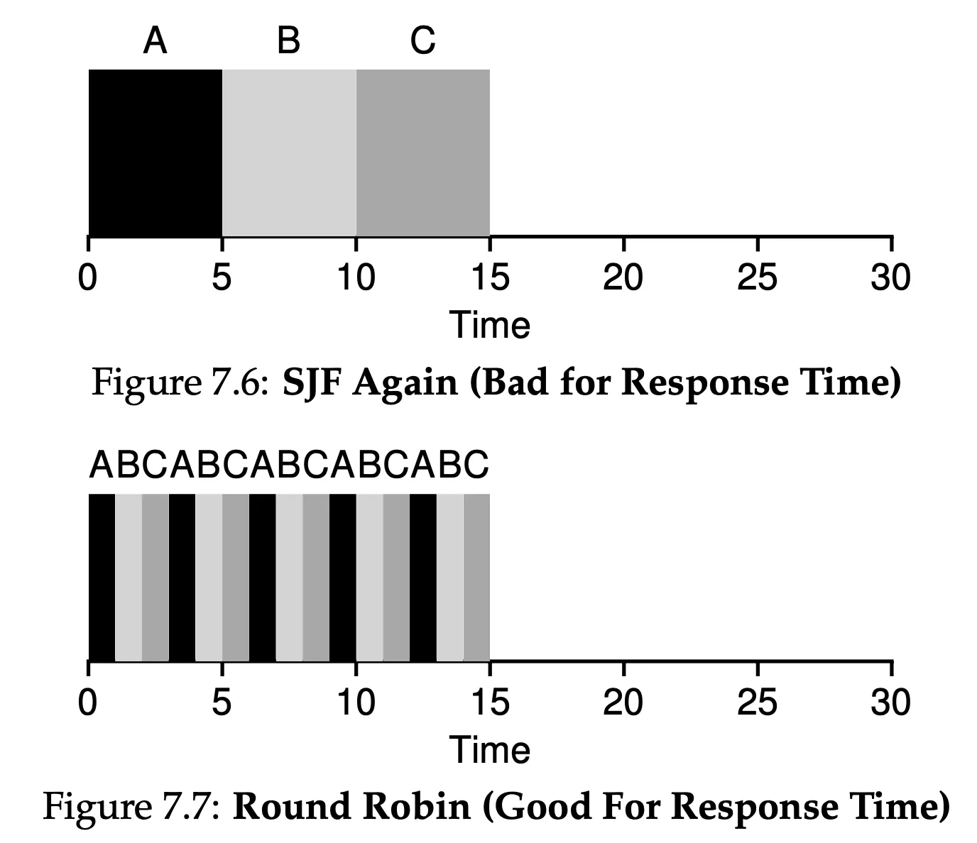 - 반환 시간 최적화: 짧은 작업을 우선적으로 처리(SJF)하면 긴 작업이 차별받을 수 있습니다.