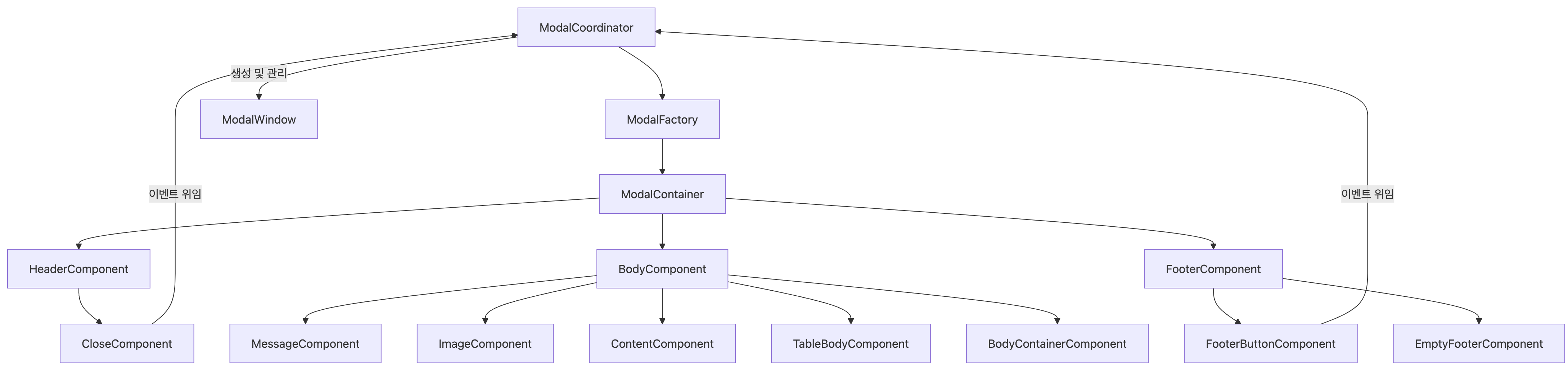 이러한 문제들을 해결하기 위해 컴포넌트 기반 아키텍처(Component-Based Architecture)와 합성 패턴(Composite Pattern)을 적용한 재사용 가능한 UI 컴포넌트 시스템을 설계하고, 이를 모달 시스템에 적용한 ModalKit을 개발하게 되었답니다.