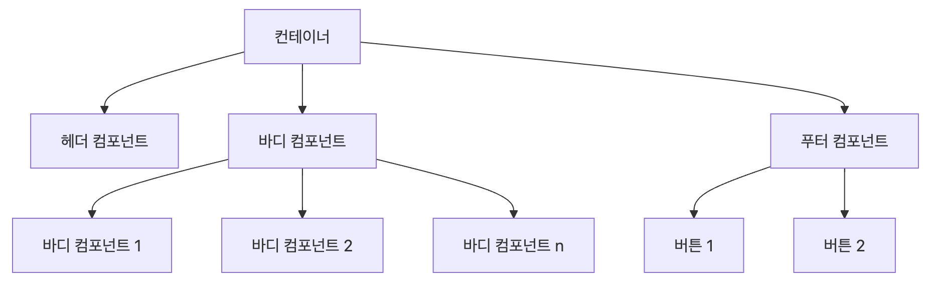 - 컨테이너(Container) 📦: 전체 UI 구조를 관리하고 컴포넌트들을 조합하는 상위 요소예요