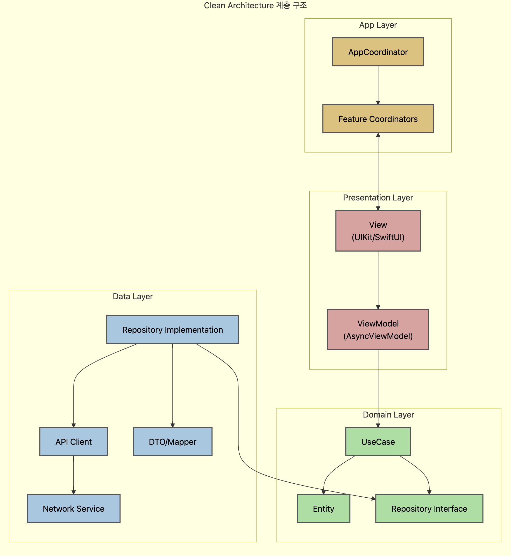 각 계층은 명확한 책임을 가지며, 의존성은 항상 외부에서 내부로 향하도록 설계했답니다.